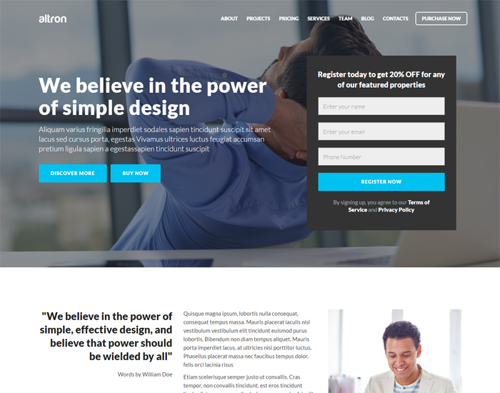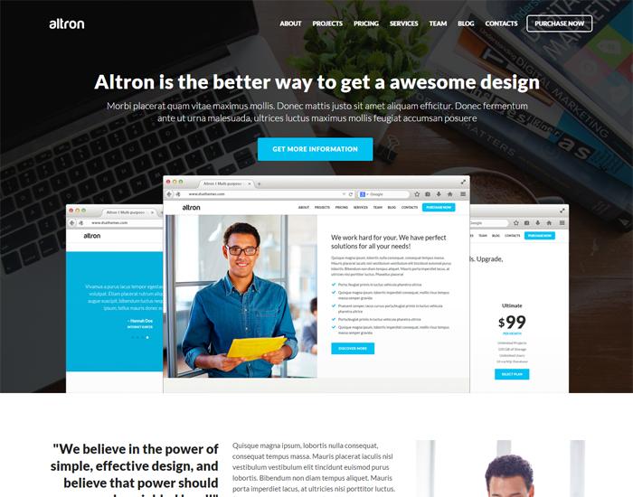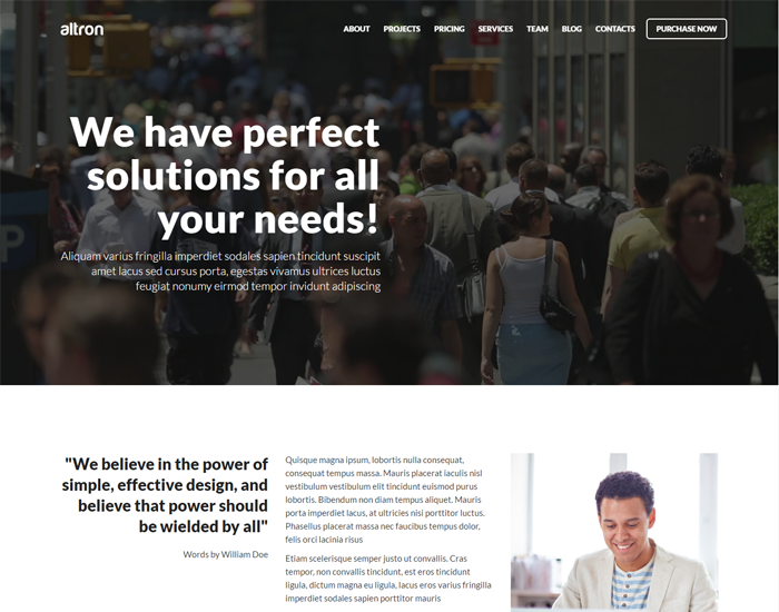 Altron provides you with a powerful HTML5 template for creating fully responsive and ultra modern website. Go on and see our features in action!